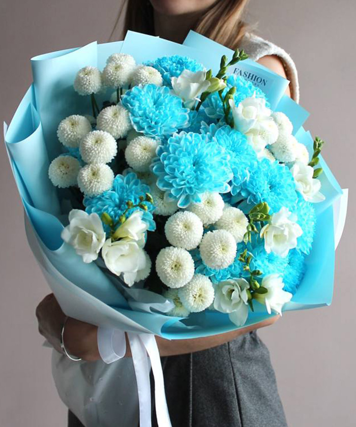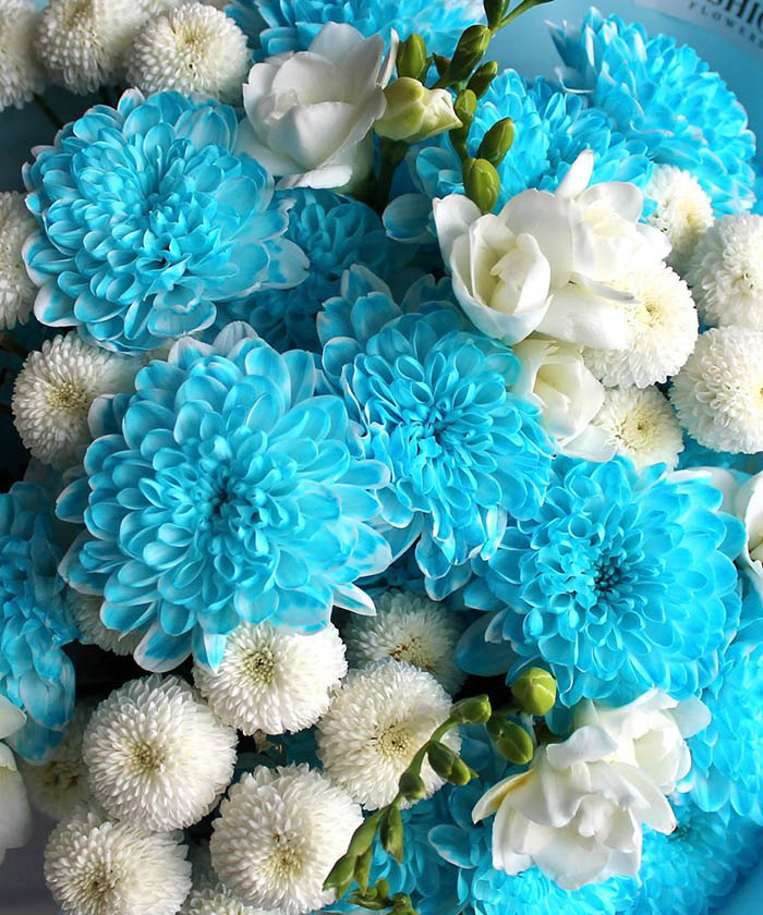 Хризантема кустовая крашеная голубая и аквамарин