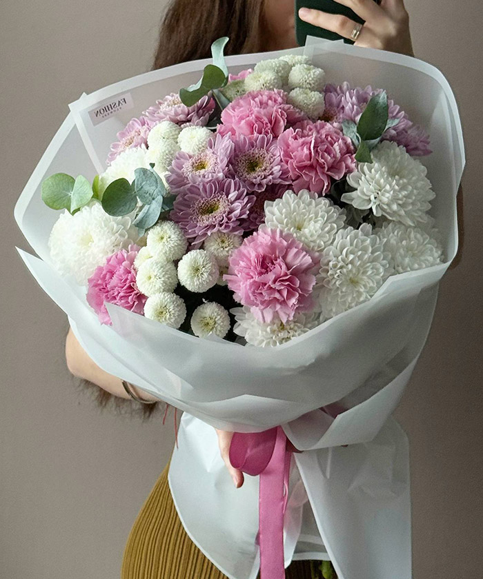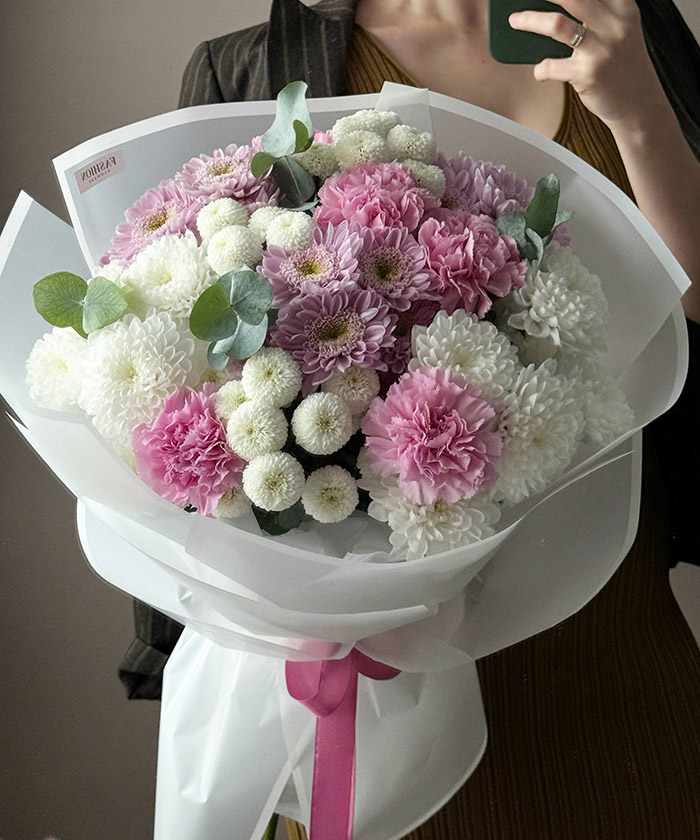 "Флоренция" букет с розовыми хризантемами №6538