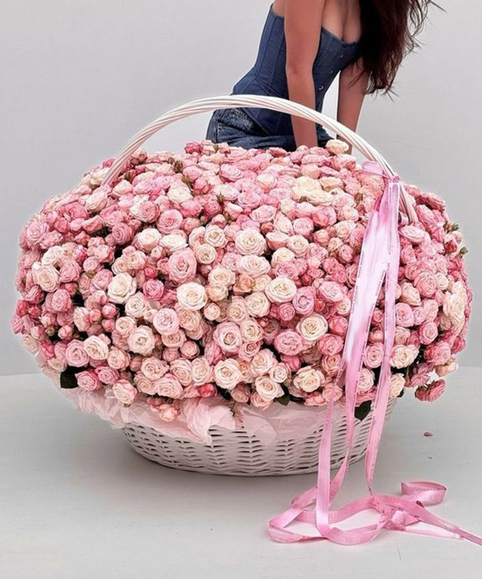 "Мисс" Огромная корзина светло-розовых кустовых роз №4359