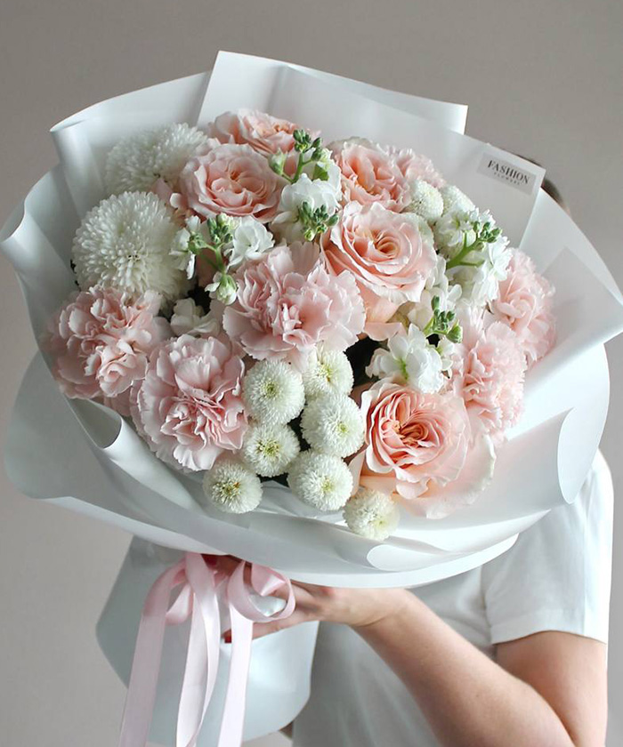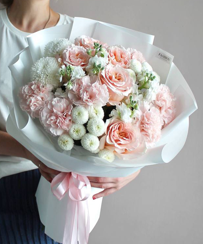 "Пудра" букет с персиковыми розами Шиммер №6567