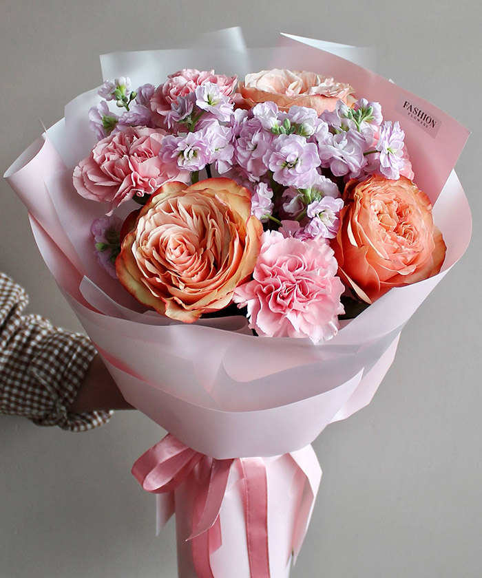 "Рассвет" букет с розами Кахала и маттиолой №5437