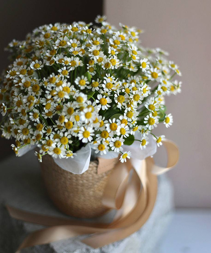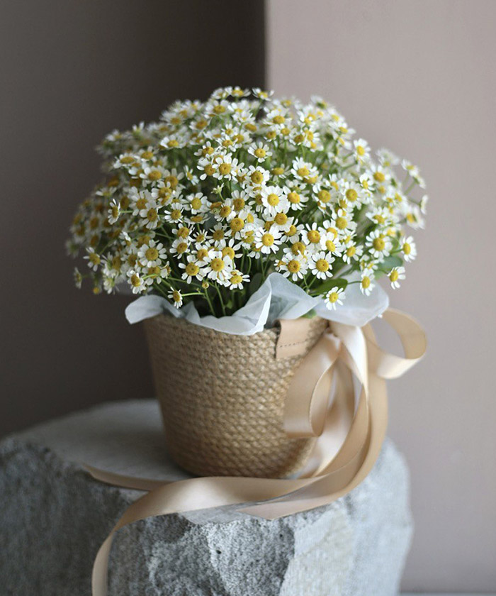 Закажите ромашки танцетум в джутовой корзинке онлайн — порадуйте близких нежностью и уютом вместе с Fashion Flowers.