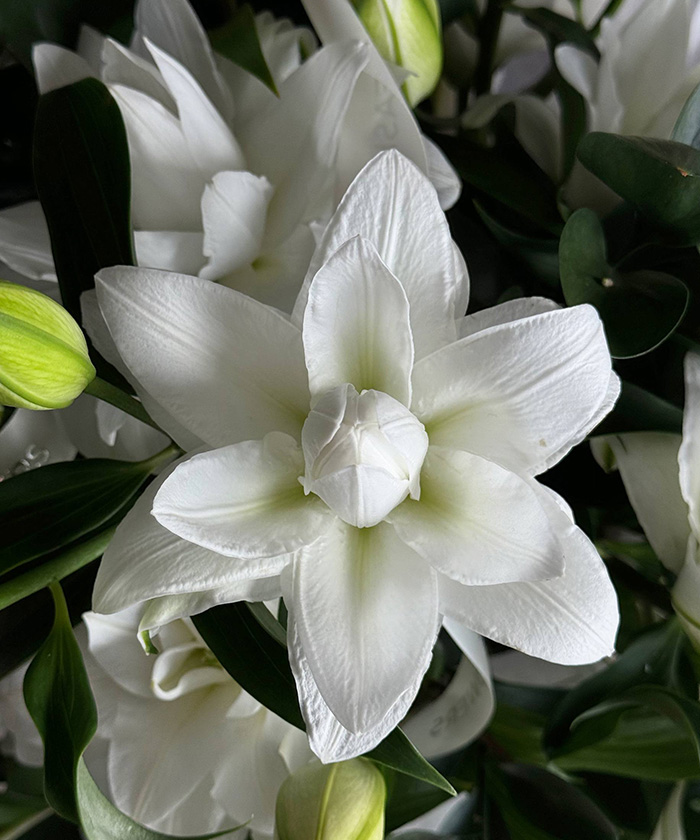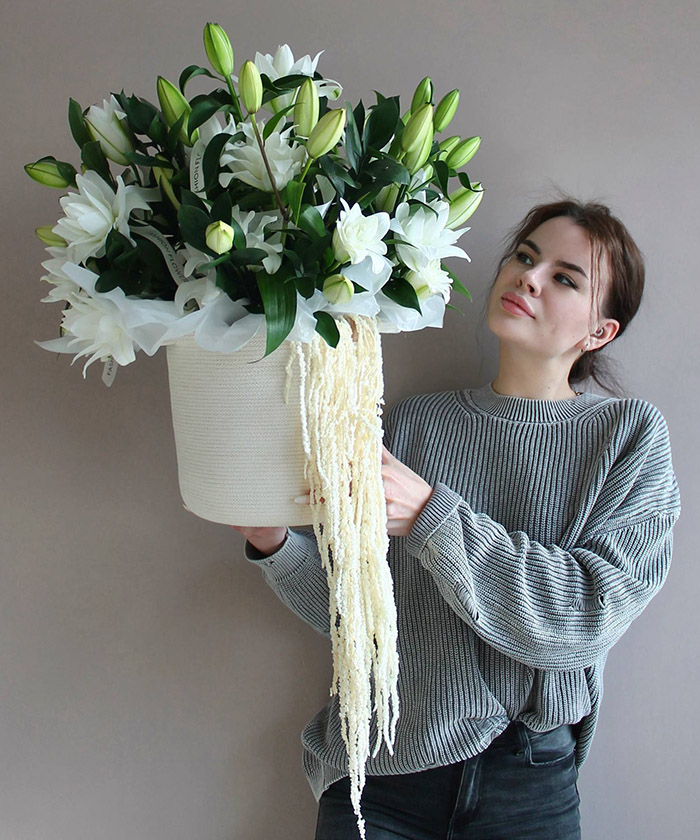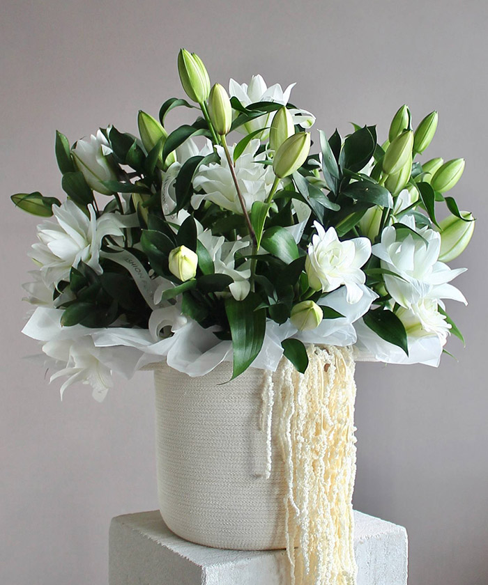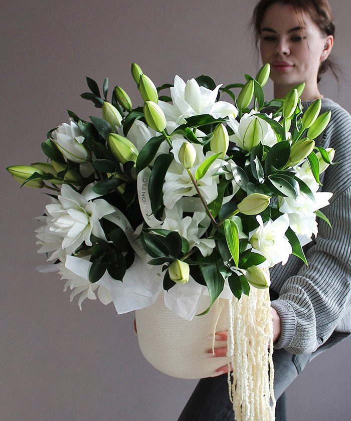"Roselily" Королевские белые пионовидные Лилии в корзине №7365