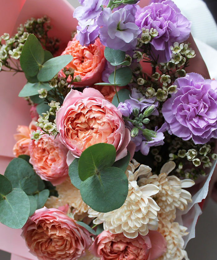 "Женева" букет с розой Джульетта и лунными диантусами №3465